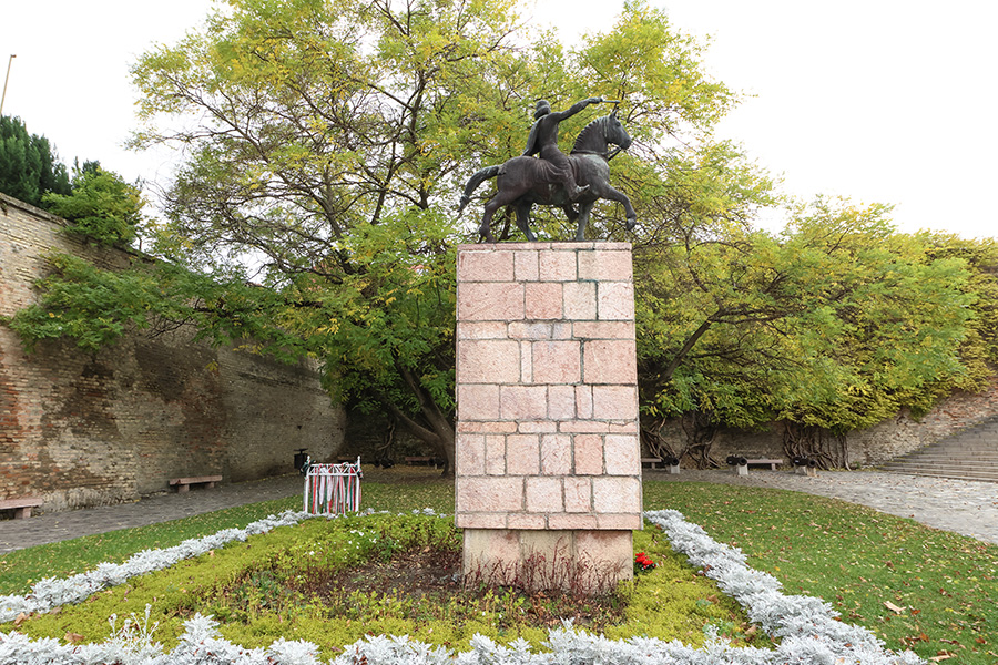Reiterstatue mit König Stephan I. in Györ. Das Denkmal wurde von Ferenc Medgyessy errichtet. Die monumentale Reiterstatue erinnert an Stephan I., den ersten König Ungarns und Begründer des christlichen Königreichs. In kraftvoller Haltung auf dem Pferd dargestellt, verkörpert die Figur staatliche Ordnung, Glauben und die Entstehung der ungarischen Nation. Die erhobene, ruhige Gestik des Königs verleiht dem Denkmal Würde und Autorität, ohne übermäßige Pathosformeln zu verwenden.