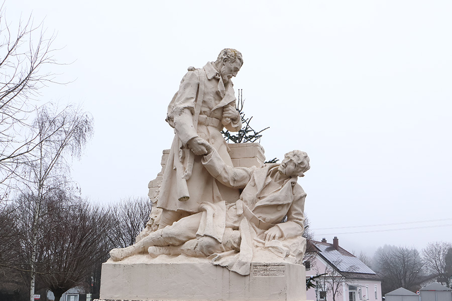 Das Kriegerdenkmal in der Marktgemeinde Kemeten befindet sich im Ortszentrum vor der Pfarrkirche zum Heiligen Nikolaus. Es wurde als Gedenkstätte für die Opfer des Ersten und Zweiten Weltkrieges errichtet und erinnert an die Männer aus der Gemeinde, die in den Kriegsjahren ihr Leben verloren haben. Das Denkmal besteht aus einem massiven, quadratischen Sockel, der von der Darstellung eines stehenden und eines liegenden Soldaten gekrönt wird. Inschriften mit den Jahreszahlen der beiden Weltkriege verweisen auf die historischen Ereignisse, denen die Gefallenen zum Opfer fielen. Bis heute ist das Kriegerdenkmal ein zentraler Ort des stillen Gedenkens und wird bei Gedenkfeiern und kirchlichen Anlässen in die Erinnerungskultur der Gemeinde eingebunden.