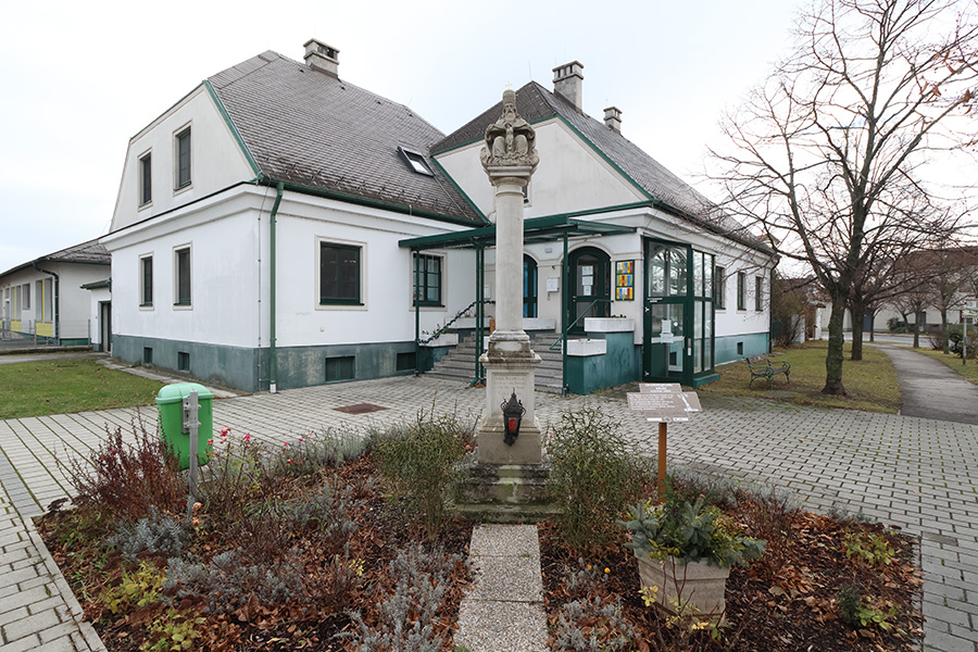 Figurengruppe der Dreifaltigkeit. Die Dreifaltigkeitssäule in Leithaprodersdorf wurde im Jahr 1899 errichtet und gehört zu den historischen Bildstöcken der Region. Gestiftet wurde sie vom aus Steinbrunn stammenden Ehepaar Franta Luka (geb. 1832) und Anna (geb. 1830). Der Stifter war ein erfolgreicher Händler, der im Zuge seiner geschäftlichen Reisen entlang der Route Sopron – Güns – Wiener Neustadt – Bratislava insgesamt rund 30 Bildstöcke errichten ließ. Die Säule in Leithaprodersdorf ist Teil dieses Netzwerks religiöser Kleindenkmäler, das sowohl als Ausdruck persönlicher Frömmigkeit als auch als sichtbarer Hinweis auf die damaligen Handelsverbindungen zu verstehen ist. Heute ist die Dreifaltigkeitssäule als lokales Kulturgut erhalten und in den regionalen Kreuz- & Quer-Weg eingebunden.